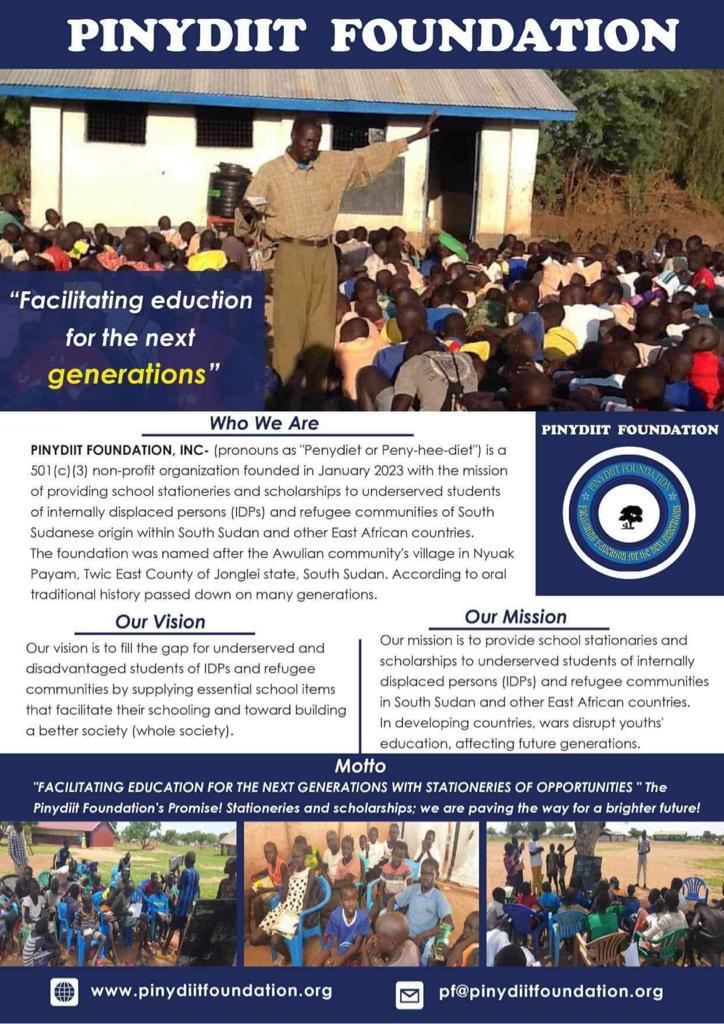 Pinydiit Foundation's headquarter is in Omaha City, Nebraska, United States of America. PF: is run by volunteers across the globe, including North America, Australia, and Africa.